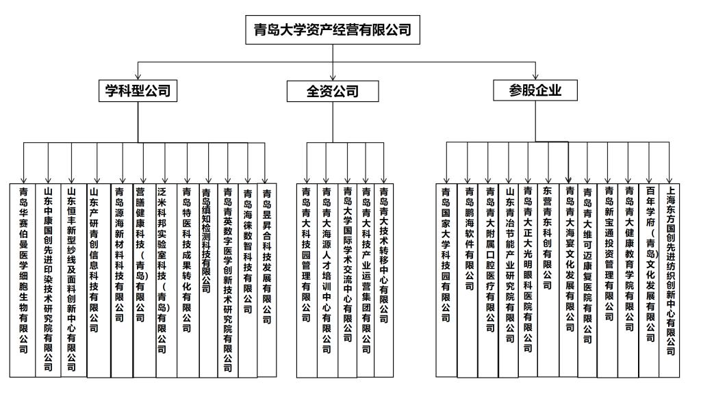 青岛大学资产经营有限公司(以下简称“公司”)是根据国务院办公厅《关于高等学校所属企业体制改革的指导意见》要求,由青岛大学投资设立的国有独资公司,地址位于青岛市崂山区宁夏路308号。公司面向产业发展需求,围绕科技创新,聚焦产学研深度融合,坚持科技创新驱动、产业发展驱动双端把握,搭建科技与产业的“结合部”,促进学校科技成果转移转化,提升资产公司的核心竞争力和盈利水平,全力推进地方经济实现高质量内涵式发展。公司企业类型属于有限责任公司(国有独资),管理并代表学校持有各对外投资企业股份。公司下设四个部门:综合部、成果转化部、产业运营部及财务部。